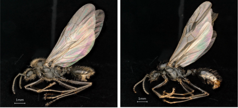 为了解开这个谜题,研究人员继续深入观察伊比利亚收获蚁的巢穴。他们在同一巢穴中意外发现了两种不同的雄蚁,一种体毛浓密,另一种体毛稀疏。进一步测序表明,这两种雄蚁在基因上是截然不同的两个物种,毛发浓密的是伊比利亚收获蚁的雄蚁,而毛发稀疏的是工匠收获蚁的雄蚁。