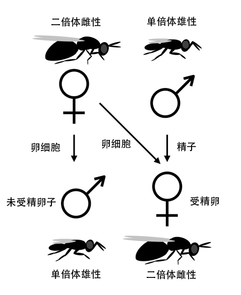 回独产卵而不到伊比利亚收获蚁的案例,当蚁后单受精时,就能生下本种的雄蚁。可要产生工匠收获蚁的雄蚁,则要经历一套更复杂的过程。研究人员发现:伊比利亚收获蚁的蚁后和工匠收获蚁的雄蚁交配时,后者的精子进入前者的卵细胞后,并不与卵细胞核结合,而是直接替换掉了原本的细胞核!这样一来,卵细胞就携带了工匠收获蚁的基因信息,最终发育成工匠收获蚁的雄蚁。