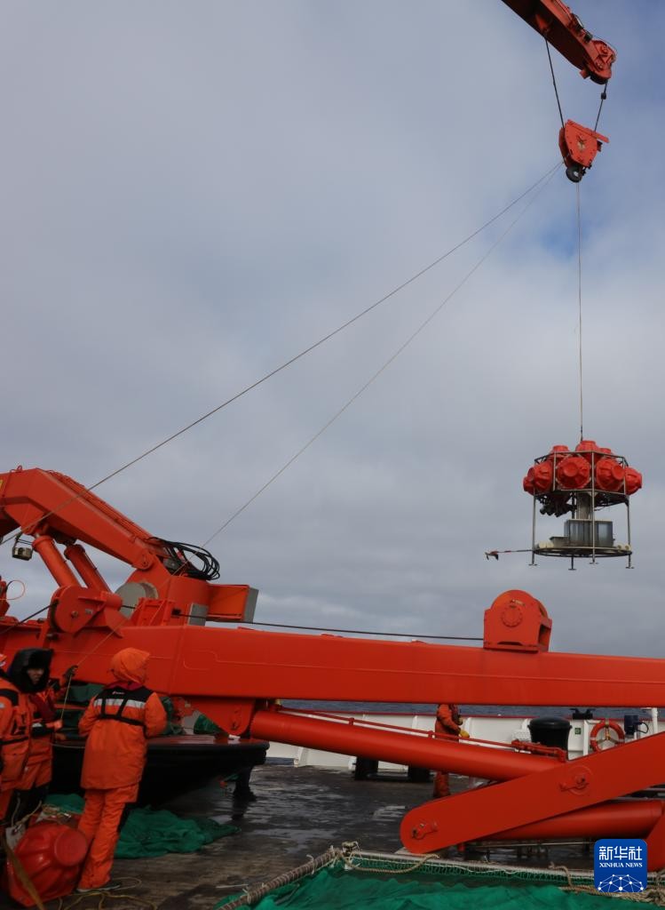 图为科考队员正在回收底拖网。新华社记者刘诗平 摄