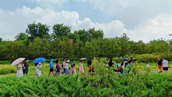 在南苑森林湿地公园,大家化身 “生态观察员”,集体学习生物多样性保护知识,实地考察湿地生态与物种形态;在丽泽金融商务区,他们又亲身体验文化传承与生态修复融合的前沿设计,感受“双碳”战略下的城市绿色脉动。