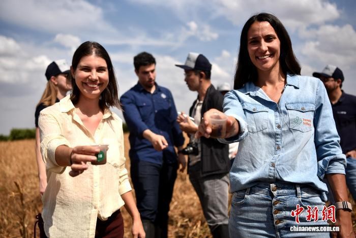 当地时间9月19日,巴西圣保罗州皮拉苏农加市,埃斯坦西亚农场农场主娜塔莉亚(左)、艾琳(右)两姐妹展示改良土壤。中新社记者 林春茵 摄