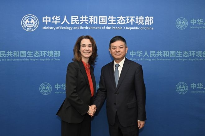 10月10日,生态环境部部长黄润秋在京会见威立雅集团首席执行官柏莲诺。双方围绕生态环境治理、应对气候变化、生物多样性保护等议题进行了深入交流。